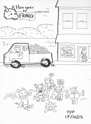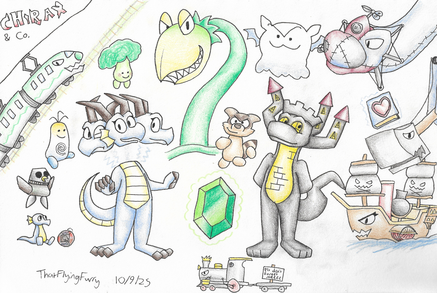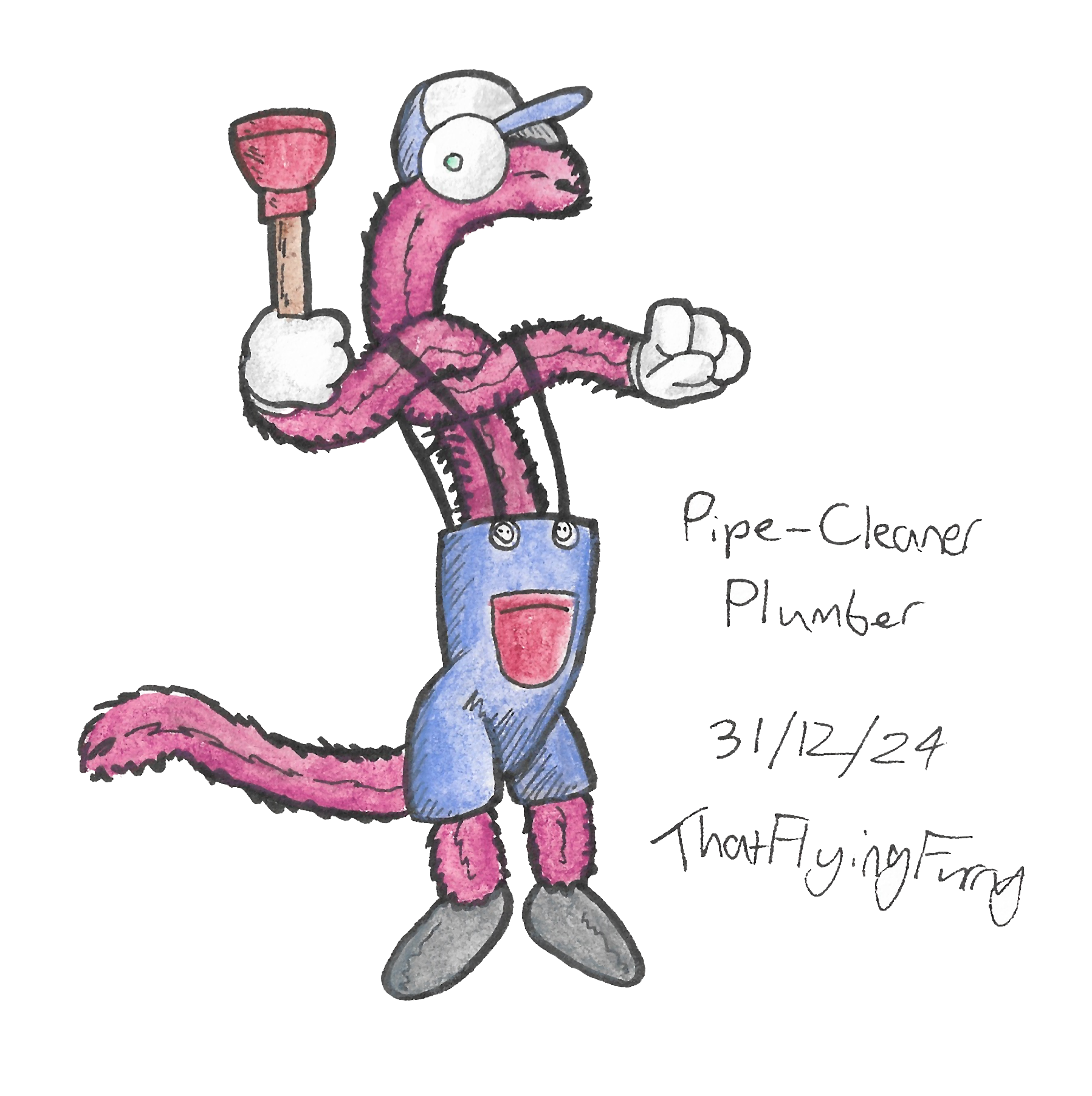 A drawing of a cute lil plush Cornflower! It was completed for Halloween '25 at the same time as the one immediately to its right...