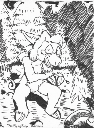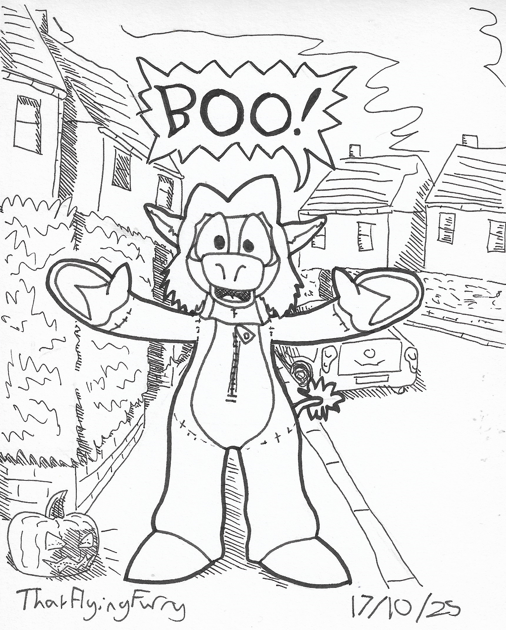 A spooky Cornflower monster! This and the fursuit drawing were the inspiration for the Halloween drawings further up the page.