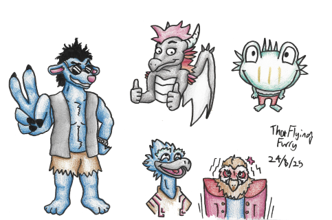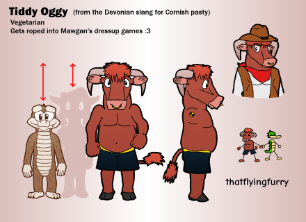 This is the ref of Mawgan, a fun lil gator guy. Originally went by Fergus. He's paired with Oggy the bull.