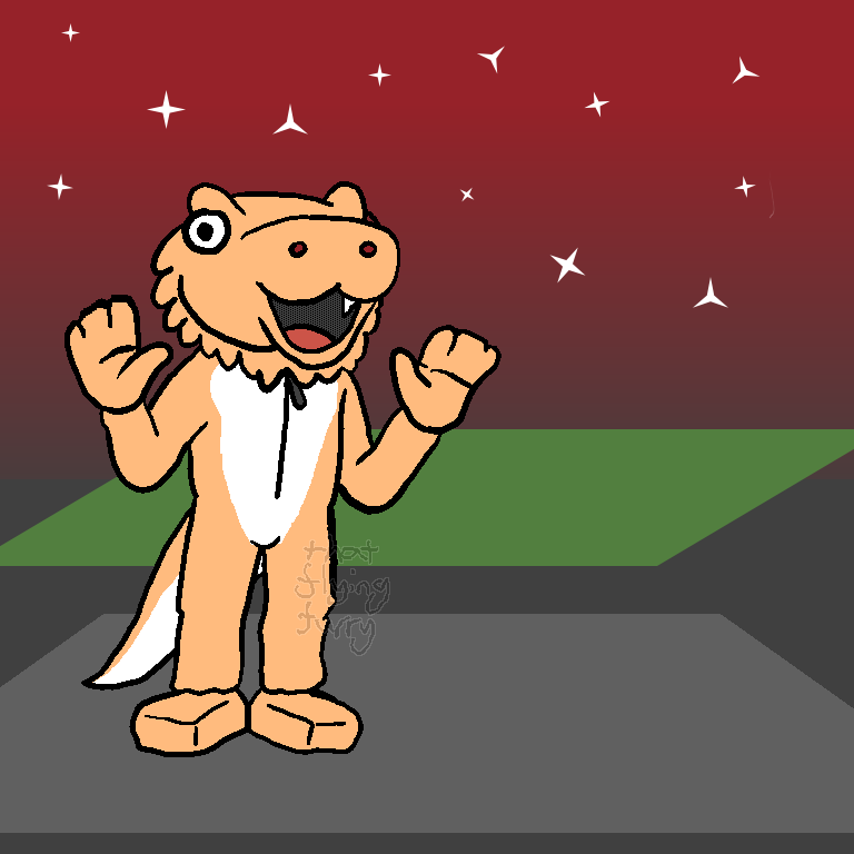This is a drawing of a silly-looking theme park mascot. I really like mascots. I called her Molly, after a bearded dragon my secondary school had.